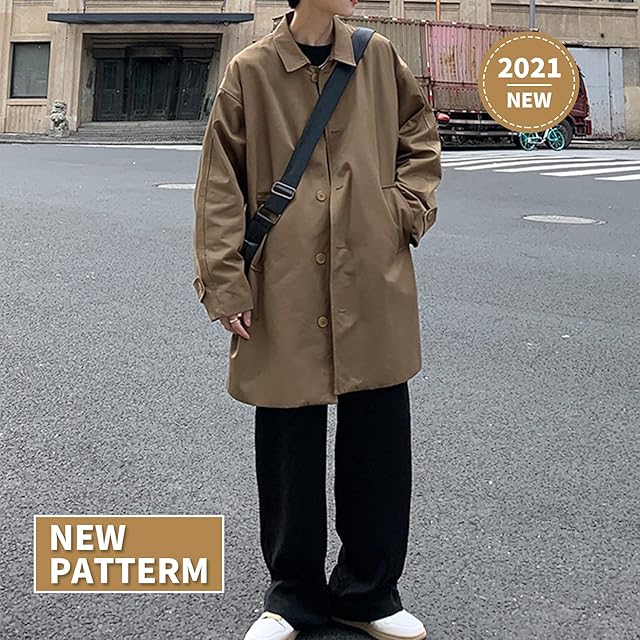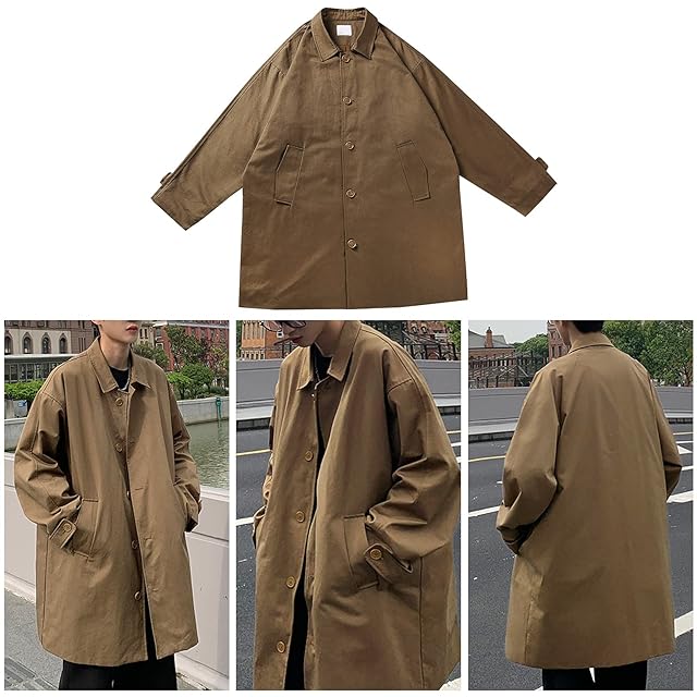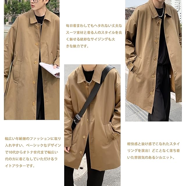 [YAYOKYA] トレンチコート メンズ ジャケット ビジネス 無地 テーラード スプリングコート カジュアル ロング丈 秋冬 防寒 薄手 コート (コーヒー, L)