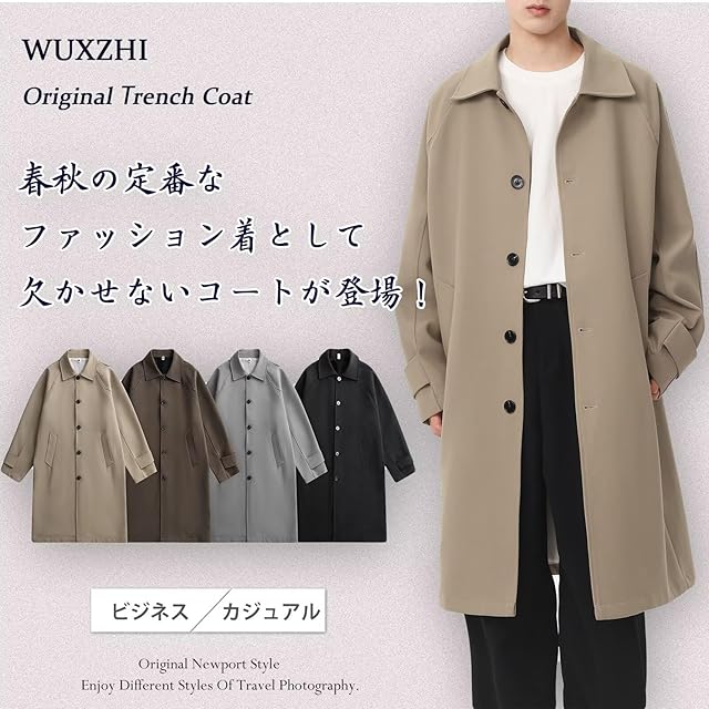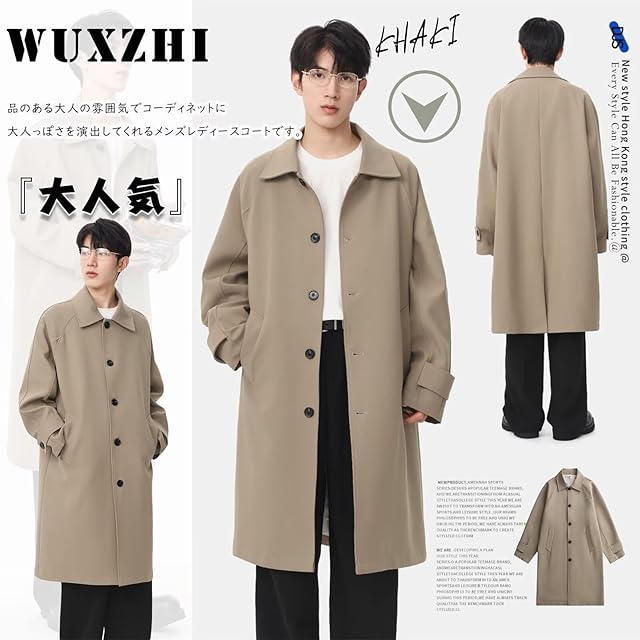 [WUXZHI] トレンチコート メンズ コート レディース ロングコート 折り襟 ゆったり ビジネス カジュアル 春コート 秋服 オーバーサイズ 大きいサイズ 春 秋 冬 ユニセックス ファッション