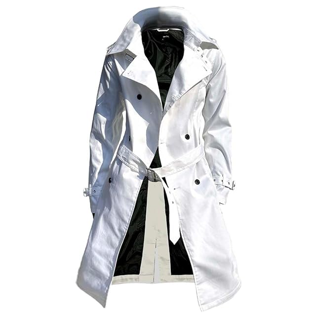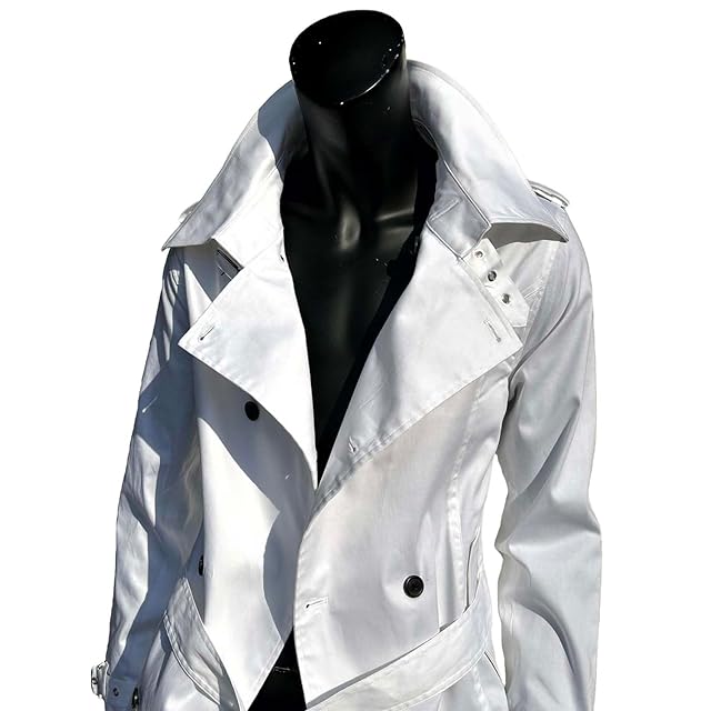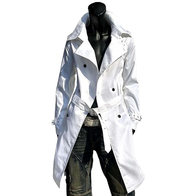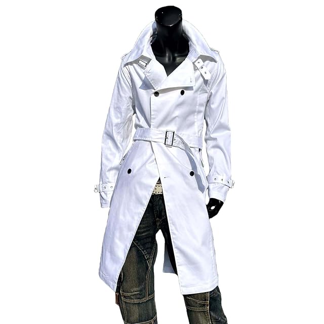 [SaganStyle] 【白,LL】ゴシック系トレンチコート メンズ ロング丈 ロングコート ヴィジュアル系 パンク系 ロック バンド 膝丈 春秋 127010-05 ホワイト LL