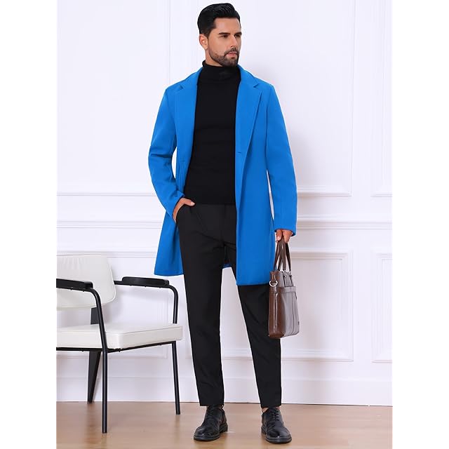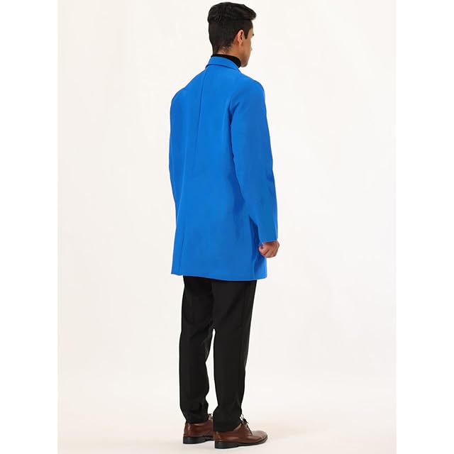 [Lars Amadeus] トレンチコート ロングジャケット オーバーコート スリム ノッチドラペル シングルブレスト 冬 メンズ ブルー 2XL