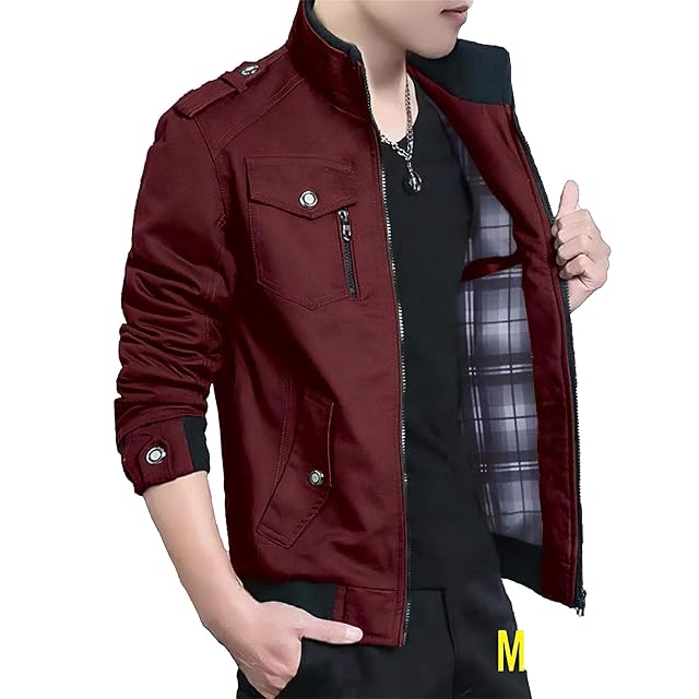 [Y's factory] 裏起毛 ミリタリージャケット M65 メンズ トレンチコート ジャンパー ボア アウター 綿 冬 秋 春 薄手 厚手 大きいサイズ 防風 [ ワイン/薄手 XL(日本Mサイズ相当) ]