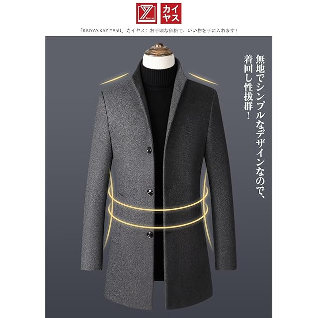 [Kayiyasu] チェスターコート メンズ コート ジャケット ロングコート トレンチコート アウター ビジネスコート ウールコート 冬服 防寒 無地 厚手 通勤 大きいサイズ ビジネス カジュアル おしゃれ 秋冬(XL グレー)