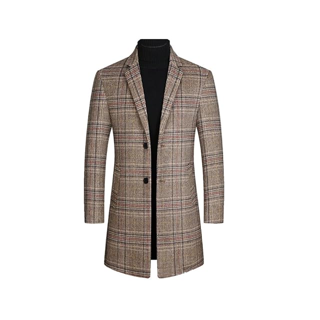 [Kibapoj] メンズトレンチコートウール混紡トップクラス厚いラシャコート冬ロングシングルボタンクラシックファッションビジネスコートフィットロングジャケットビジネスラシャコート(黄色のグリッド,XL)