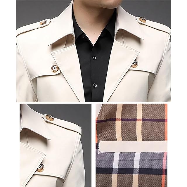 [Quntum A.E] トレンチコート メンズ ジャケット スプリングコート 防風 撥水 無地 ビジネス カジュアル 兼用 折り襟 春 秋 冬 スタイリッシュ 韓国風(L オフホワイト)