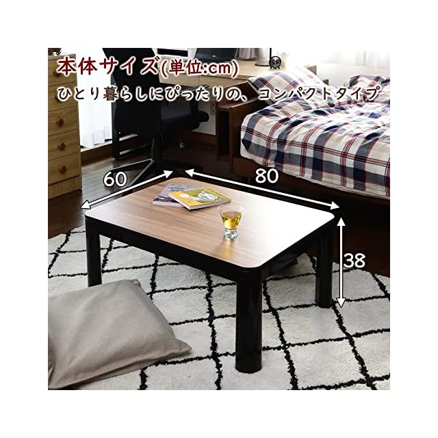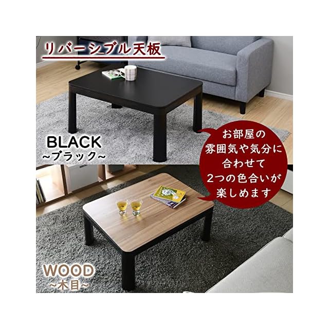 [山善] カジュアル こたつ テーブル 幅80cm×奥行60cm 長方形 一人暮らし リバーシブル天板 中間入切スイッチ 温度調節無段階 天板ラウンド加工 ブラック NCK-80601(BK/BF)