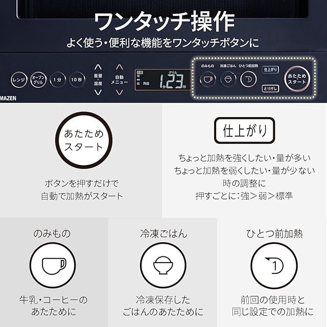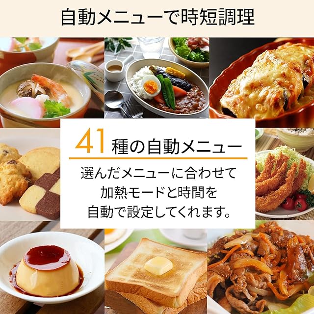 【レンジ機能】1000W/600W/500W/200W/100Wでの出力切替が可能。時短調理をしたい場合は1000Wですばやくあたためられます※1。100W/200Wやオートメニューの「解凍・半解凍」でお肉の解凍もできます。※1:定格高周波出力1000Wは短時間高周波出力機能(約3分間)であり、3分後に約600Wに自動的に切り換わります。※累積調理時間が3分を超えた場合および庫内の温度が高い場合1000Wの出力設定ができない場合があります。