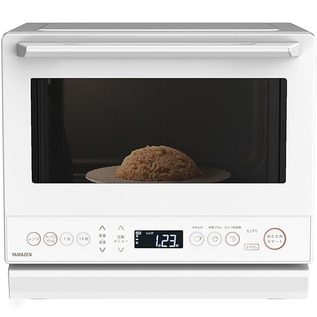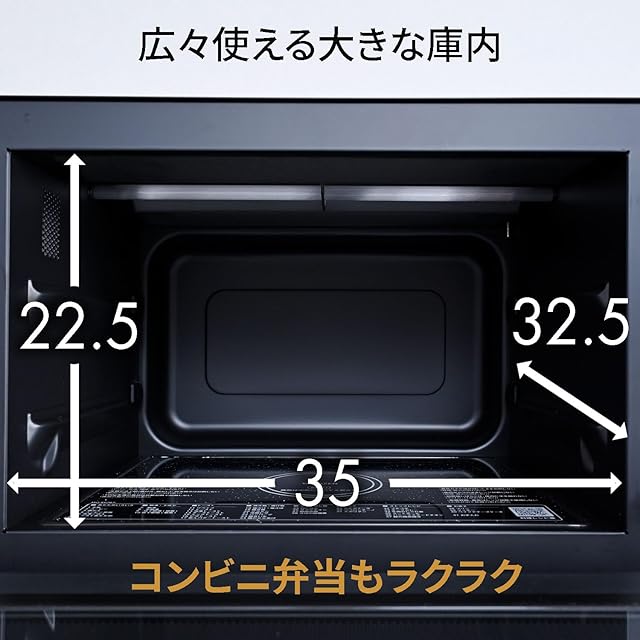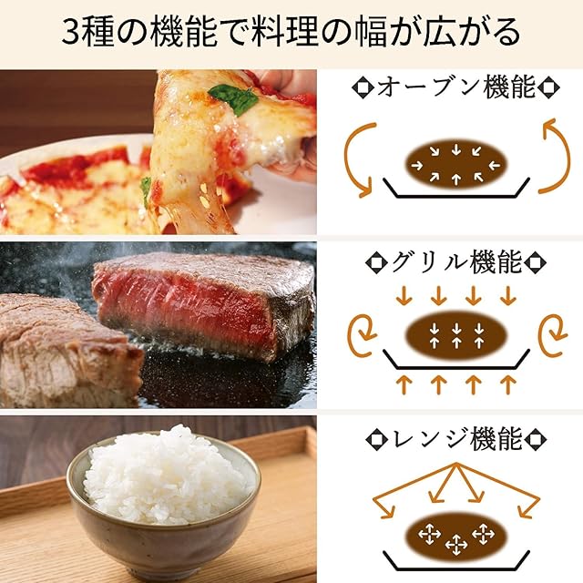【商品仕様】本体サイズ:幅46.5×奥行38.5×高さ39.0cm、本体重量:13.2kg、庫内サイズ:幅35.0×奥行32.5×22.5cm、庫内容量:26L、電源コードの長さ:約1.4m、庫内テーブル:フラットテーブル、電源: AC100V(50/60Hz共用)、消費電力:[レンジ=1400W][オーブン=1150W][グリル=730W]、レンジ高周波出力:1000W/600W/500W/200W相当/100W相当、オーブン温度調節範囲:40℃(発酵)、100~250℃、期間:お買い上げ日より1年間(の範囲については、取扱説明書をご確認ください。(一般家庭用以外(業務用など)に使用された場合の故障及び損傷などは対象外となります))