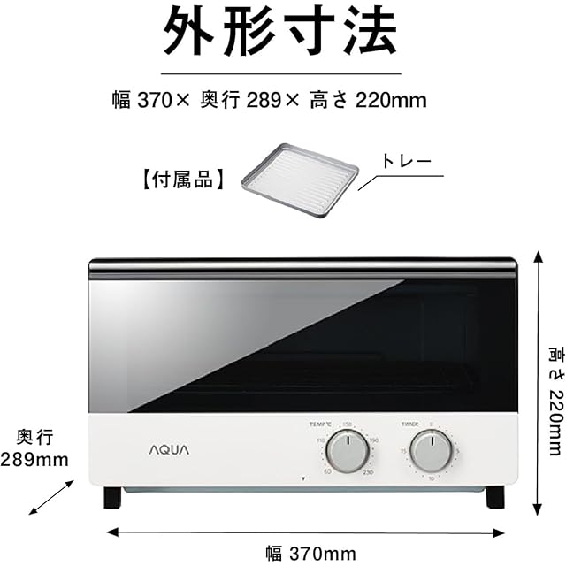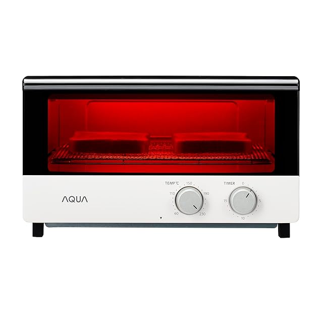 アクア (AQUA) トースター 2枚焼き (1200W / 石英管ヒーター / 15分タイマー) オーブントースター 温度調整可能 (受け皿付き) TA2WR ホワイト
