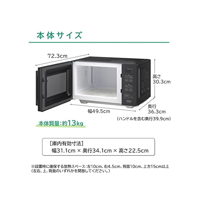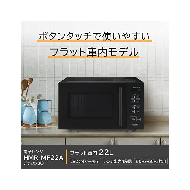 日立(HITACHI) 単機能 電子レンジ 22L HMR-MF22A K ブラック フラット庫内 LEDタイマー表示 50Hz/60Hz対応