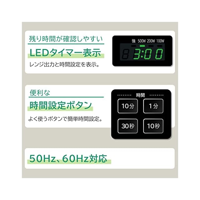 レンジ出力4段階切替:600W,500W,200W相当,100W相当