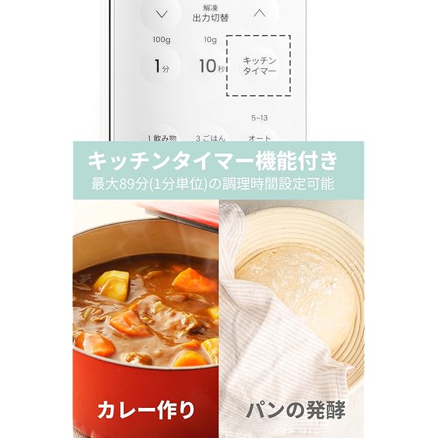 【消音・チャイルドロック・キッチンタイマー機能】子供のいたずら事故を防ぐために、チャイルドロックをかけることができます。また、夜や朝早めに料理をする時、消音モードにすれば騒音を出さずに静かに操作できます。それに、 パンを発酵したり、カレーを作ったりした時、この電子レンジもキッチンタイマーとして使えられ、最大89分カウントダウンできます。