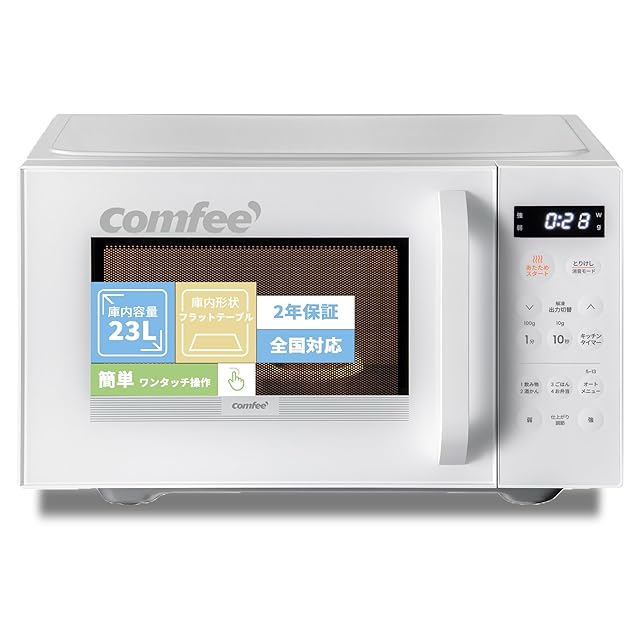 コンフィー(COMFEE') 電子レンジ23L フラットテーブル【2024年新モデル】 単機能 ヘルツフリー 全国対応 オートメニュー13種搭載 消音・チャイルドロック機能 液晶画面付き CMO-EMP032XFPG ホワイト