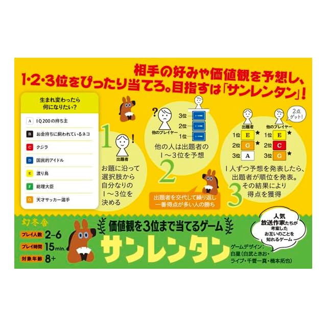 商品名:幻冬舎(Gentosha) サンレンタン 価値観を3位まで当てるゲーム カードゲーム 8歳以上