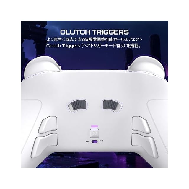 【プロ仕様のトリガーと背面ボタン】 5段階調整可能なホールエフェクトClutch Triggersと、マッピング可能な4つの背面ボタン、3つのプロファイル保存機能を搭載。素早い応答と高い操作性で勝利をサポート