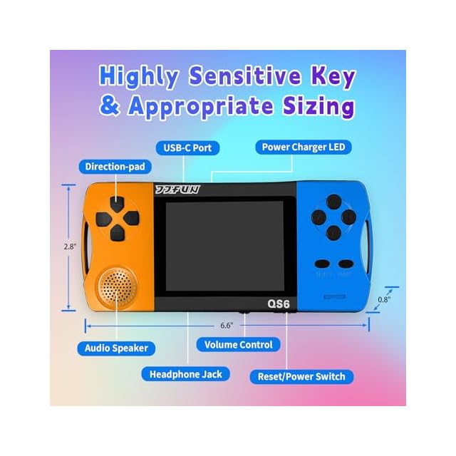 【大画面と持ち運びやすさ、充電式の利便性】3.2インチの高精細カラー画面を搭載し、鮮やかな色彩とクリアな画質でゲームの世界を生き生きと表現。子供の目を保護する設計で、長時間のプレイでも疲れにくい仕様です。コンパクトで軽量(約150g)なボディは持ち運びに最適で、バッグやポケットに簡単に収まります。内蔵の充電式リチウム電池はフル充電で4~6時間の連続プレイが可能。付属のUSBケーブルで手軽に充電でき、電池交換の手間を省きます。いつでもどこでも、子供の楽しみを途切れさせません。