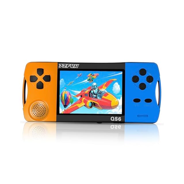 【6-12歳向け】ポータブルゲーム機 216種の16ビット知育ゲーム内蔵 3.2インチ画面 WiFi不要 即遊び可能 充電式リチウム電池 4-6時間連続プレイ パズル/数学/冒険/スポーツ/レース/早教ゲーム 手脳協調力向上 子供向けプレゼントに最適 屋内屋外兼用--オレンジ + ブルー