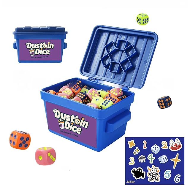 商品名:Dumpster Dice,ゴミ箱サイコロ,2-6人のプレイヤーに適したアップテンポなホームサイコロゲーム、80個のサイコロ+落書きシール、携帯型パーティーゲーム、大人のゲームの夜、旅行の冒険に適した、ゴミ箱のような外観