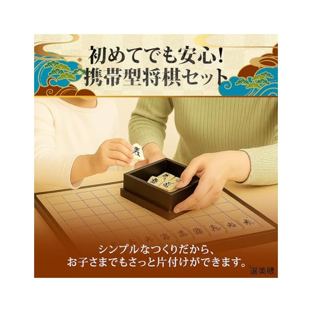 携帯性: 折りたたみ式でコンパクトなため、旅行や外出先など、場所を選ばずに将棋を楽しむことができます。 安定性: 駒と将棋盤に磁石が内蔵されており、駒がずれにくいのが特徴です。移動中の電車内や車内でも安心して遊べます。 教育的: 知育玩具として、お子様の集中力や思考力を養うのに適しています。日本語の駒の動かし方説明書や、基本的なルールが記載されているものもあります。 仕様: 展開時のサイズは25cm×25cm×2cm、折りたたみ時は25cm×12.5cm×4cm程度のものが多いようです。商品の重量は約0.4kgと軽量です。 対象: 初心者や子供向けに作られており、手軽に将棋を始めたい方におすすめです。