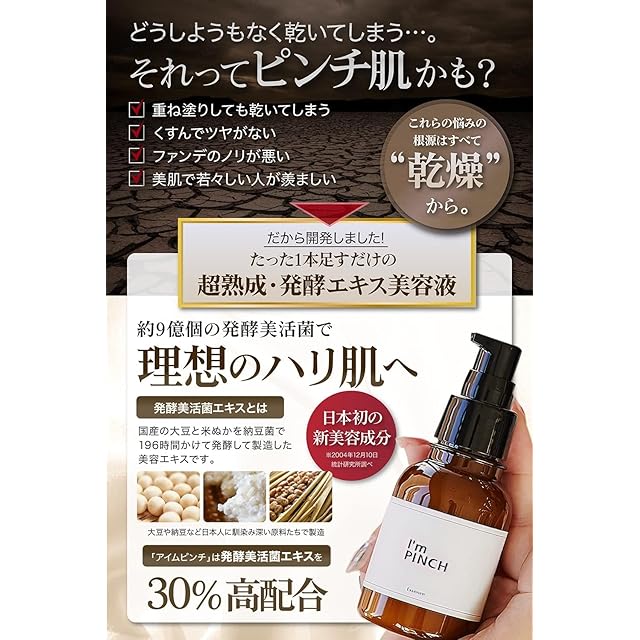 I'mPINCH アイムピンチ 乾燥 小じわ 美容液x日本初の発酵エキスx乾燥肌用x60mlx1ヵ月分(公式商品)