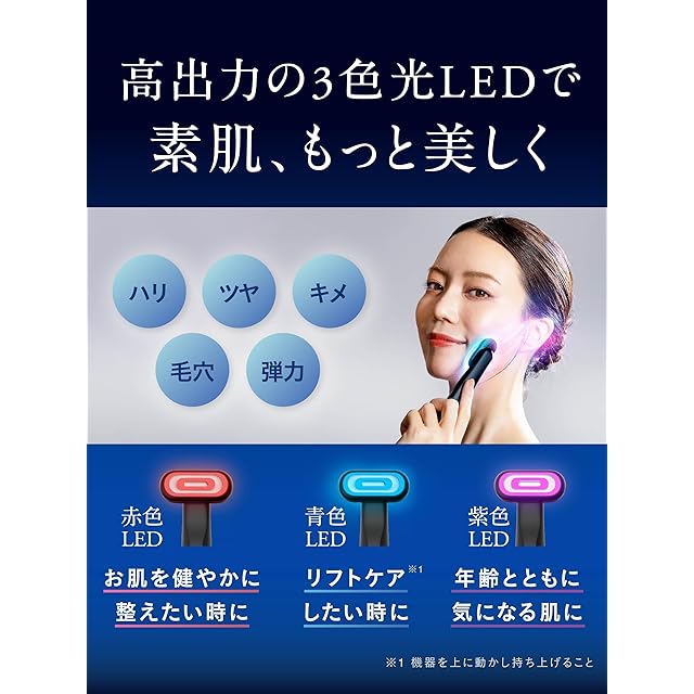 【三色光LED】REFINE EYEはサロンでも採用されている光LEDを搭載。紫色、青色、赤色と肌悩みに合わせた三色の光LEDで理想の素肌へ導きます!高出力の光LEDを照射することで、お肌に集中的にアプローチ!