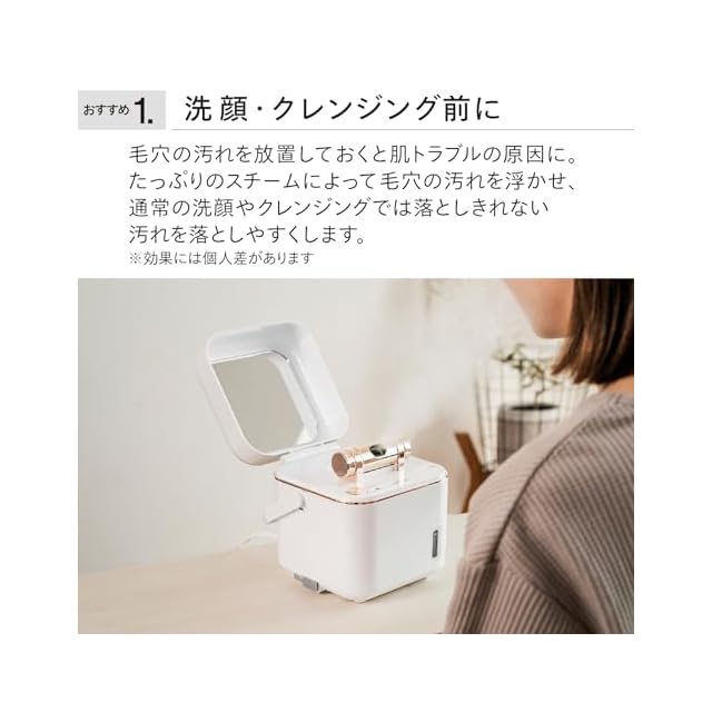 【洗顔・クレンジング前に】毛穴の汚れを放置しておくと肌トラブルの原因に。 たっぷりのスチームが毛穴の汚れを浮かせ、通常の洗顔やクレンジングでは落としきれない汚れを落としやすくします。
