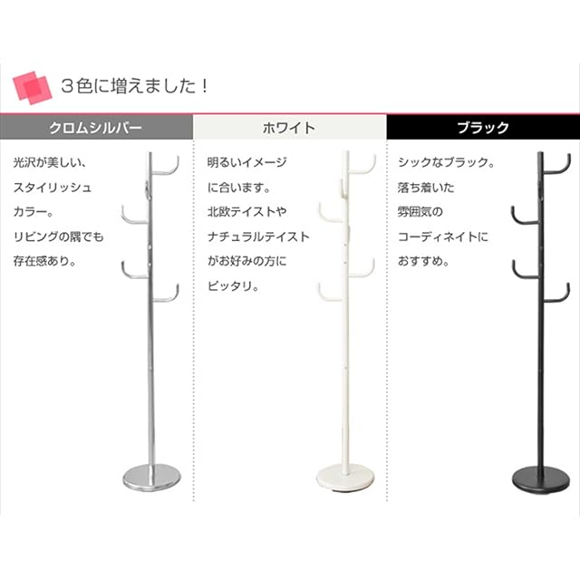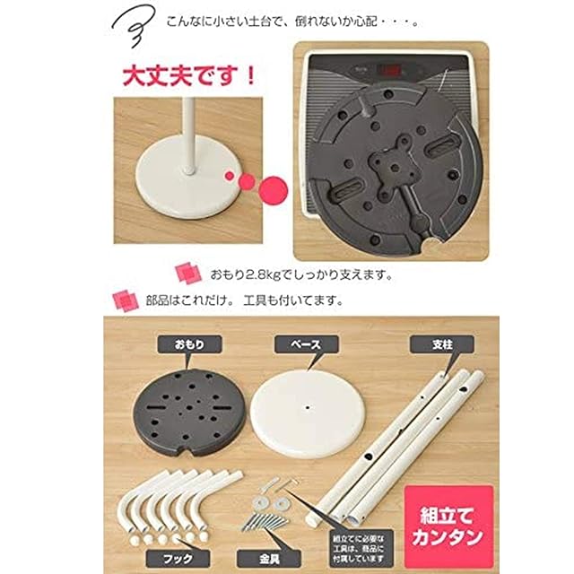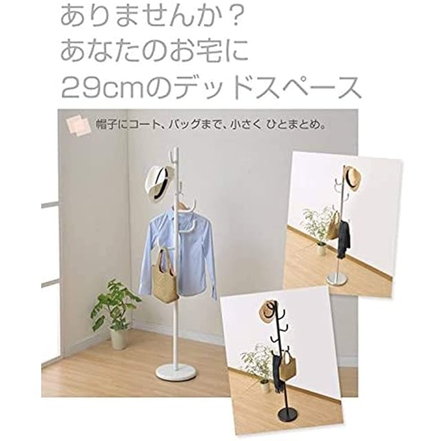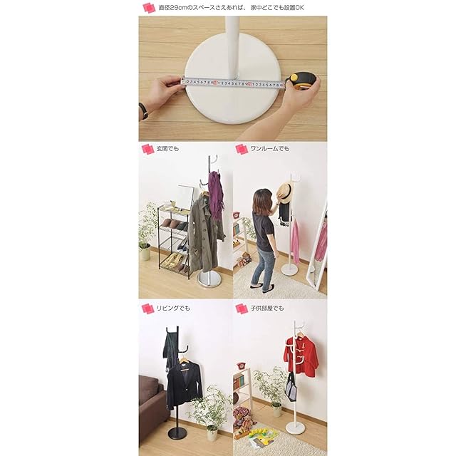 ●本体サイズ : 幅30×奥行30.5×高さ108㎝●全体耐荷重:16㎏●上段ポール耐荷重:10kg●フック耐荷重:各2kg●材質:[本体]スチール(エポキシ樹脂塗装)、[ベース]ポリプロピレン●お客様組立品