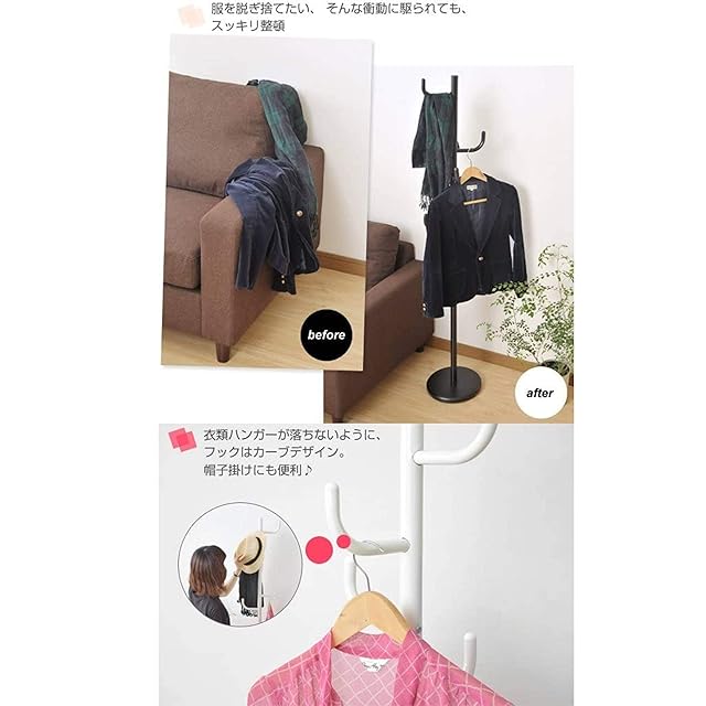 ●本体サイズ:幅45×奥行40×高さ124.5-174.5cm●ハイタイプ高さ:174.5cm、ロータイプ高さ:124.5cm●フック長さ:内寸約10cm●脚部間隔:約41cm●支柱直径:約20mm●耐荷重:フック1本あたり2kg●材質:天然木/ブナ材●お客様組立品(かんたん組み立て)●東証(株)山善で扱うすべての山善商品は、自社もしくは第三者機関において、JIS規格に基づいた品質試験を行っております。