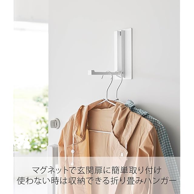 山崎実業(Yamazaki) マグネット 折り畳みハンガー ホワイト 使用時:約W8×D16.5×H18cm 収納時:約W8×D3×H18cm タワー tower 簡単取り付け 玄関 収納 5987