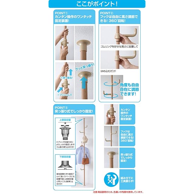 【ワンタッチ突っ張り構造】実用新案取得済みのワンタッチ突っ張り構造で、設置がカンタンで移動もさせやすいです。