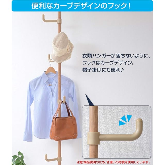 山善(YAMAZEN) 突っ張りポールハンガーラック(高さ190-260cm) 木目ナチュラル WJ-725R(GNA)