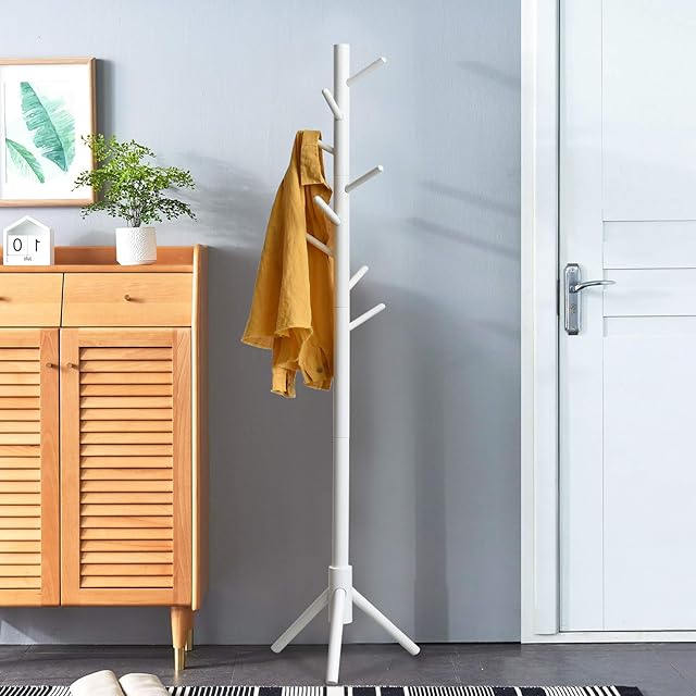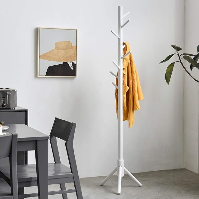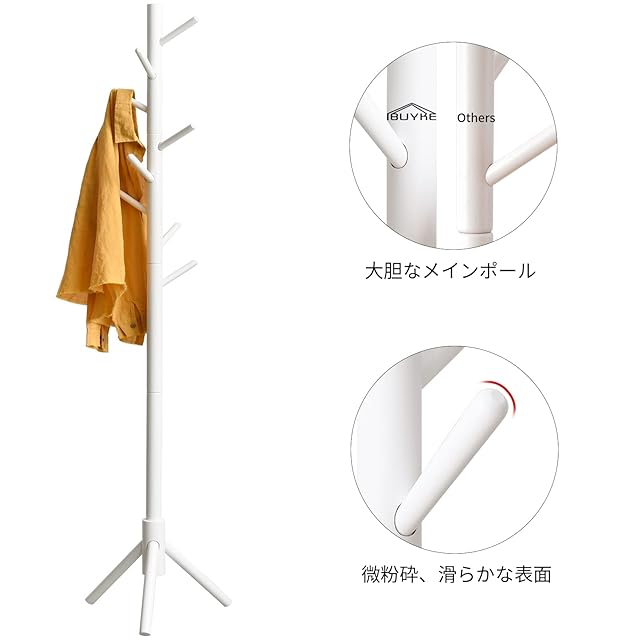 IBUYKE ポールハンガー おしゃれ コンパクト 衣類収納 木製 コートハンガー 落ちにくい 倒れにくい キッズポールハンガーへ変更可能 枝型フック設計 高さ183cm 組立て簡単 ホワイト JPRF-1194