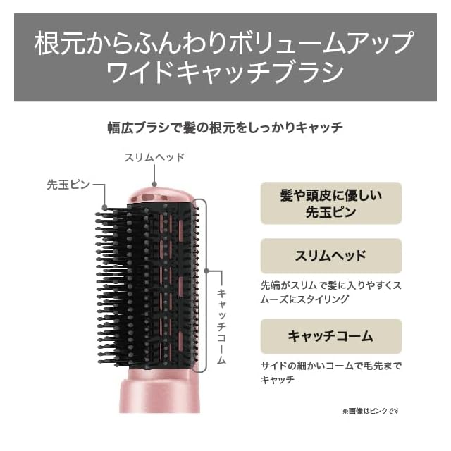 幅広のワイドキャッチブラシが、ボリュームアップさせたヘアスタイルやブローなど幅広いニーズに応えます。