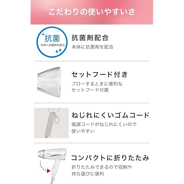テスコム ドライヤー マイナスイオン 折りたたみ 大風量 軽量 冷温風 ione ホワイト TD330B-W/E