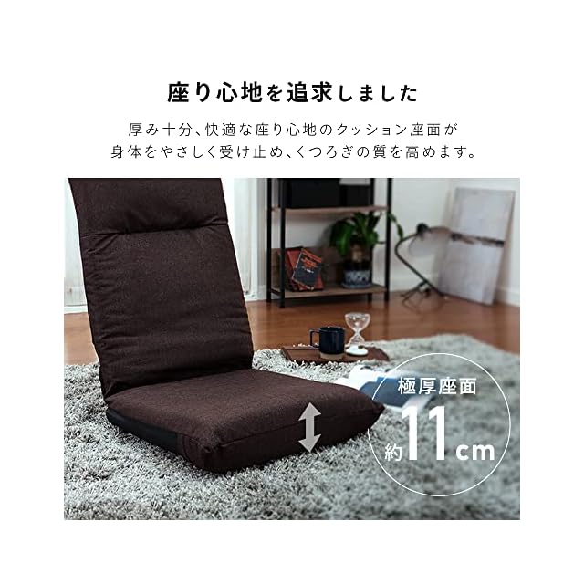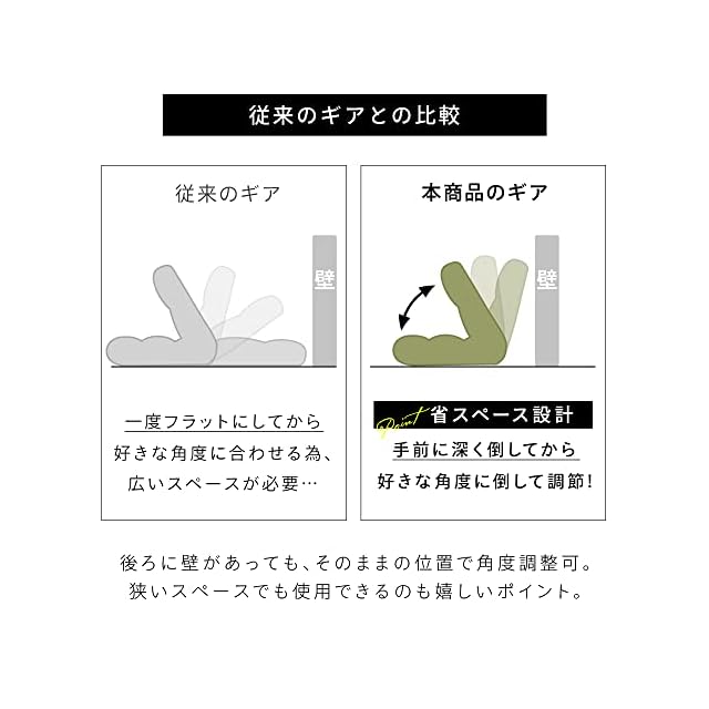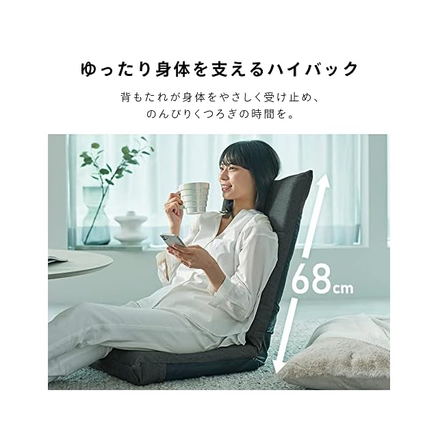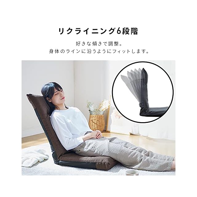 背もたれ6段階リクライニング。心地良い角度に調節できます。長時間座っても快適な座り心地。背中やお尻、身体に沿うようにフィットします。