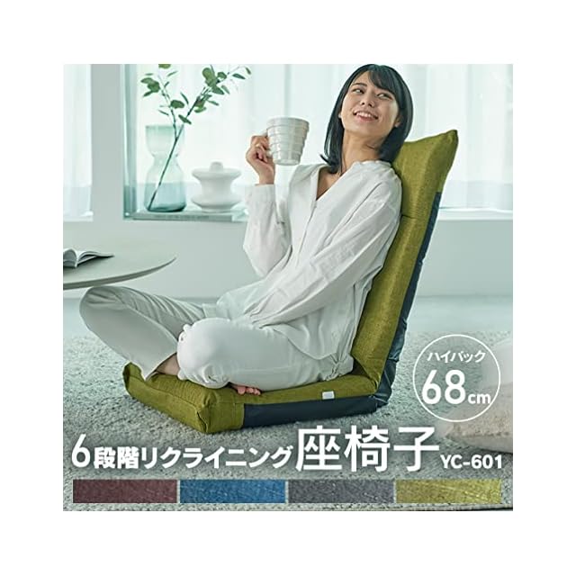 アイリスプラザ(IRIS PLAZA) 座椅子 デニムブルー 幅約46×奥行約58×高さ約68cm リクライニング YC-601