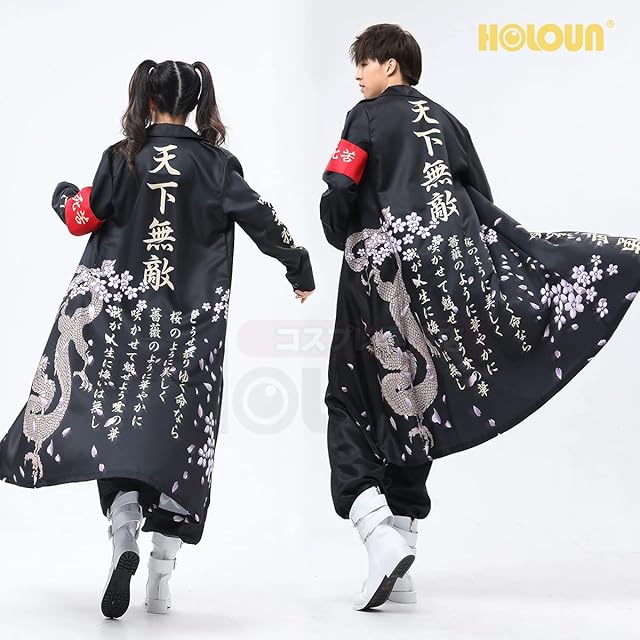 [HOLOUN] ハロウィン特攻服コスプレ衣装 印刷スタイル 暴走族 舞台装 演出服 文化祭 撮影 祭り Cosplayハロウィン仮装 アニメ祝日贈り物 (黑色 M