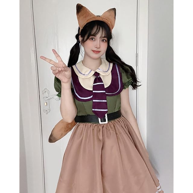 【豪華5点セット】ウサギ警察:うさ耳カチューシャ+ネクタイ+ワンピース+バッジ+ベルト。キツネ詐欺師:キツネ耳カチューシャ+ネクタイ+ワンピース+シッポ+ベルト。ファスナー付きで着脱が簡単ですよ!