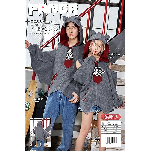 クリアストーン(Clearstone) ファングル コスプレ ハロウィン こうもりパーカー ユニセックス グレー