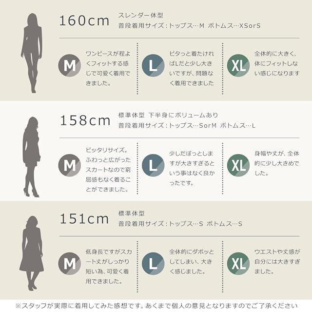 サイズ:「スカートタイプ」【Mサイズ】バスト:87-92 着丈(トップス):54 袖丈:25 ウエスト:58-66 着丈(ボトムス):39 【Lサイズ】バスト:91-96 着丈(トップス):55 袖丈:25 ウエスト:62-68 着丈(ボトムス):41 【XLサイズ】バスト:93-98 着丈(トップス):59 袖丈:26 ウエスト:72-78 着丈(ボトムス):42 「ワンピースタイプ」【Mサイズ】バスト:81-86 ウエスト:72-77 着丈:77 袖丈:17 【Lサイズ】バスト:85-90 ウエスト:75-80 着丈:80 袖丈:18 【XLサイズ】バスト:93-98 ウエスト:81-86 着丈:87 袖丈:19 ※バスト・ウエストは平置き採寸したものを2倍して表示しています。 ※サイズはすべてCM(センチ)表記です。 ※サイズは平置き・メジャーで計測しておりますので、実際とは誤差が出る場合がございます。