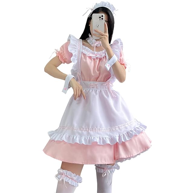 [FULINE] メイド服 コスプレ セクシー ロリータ 衣装 リボン プリンセス ドレス ゴスロリ ワンピース 大きいサイズ ピンク S