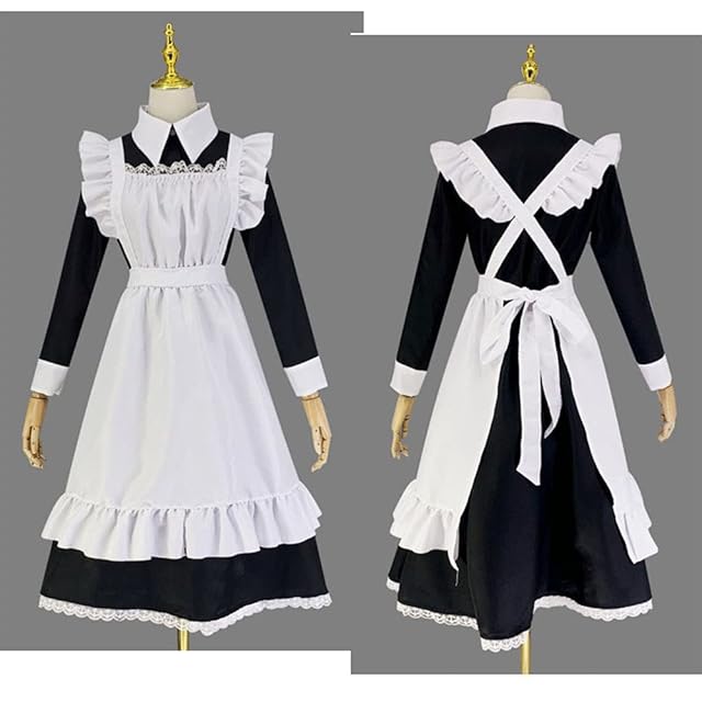 [FULINE] メイド服 男女兼用 大きいサイズ ドレス コスプレ衣装 メイドカフェー コスチューム 仮装 学園祭 パーティグッズ 長袖 ロング XL