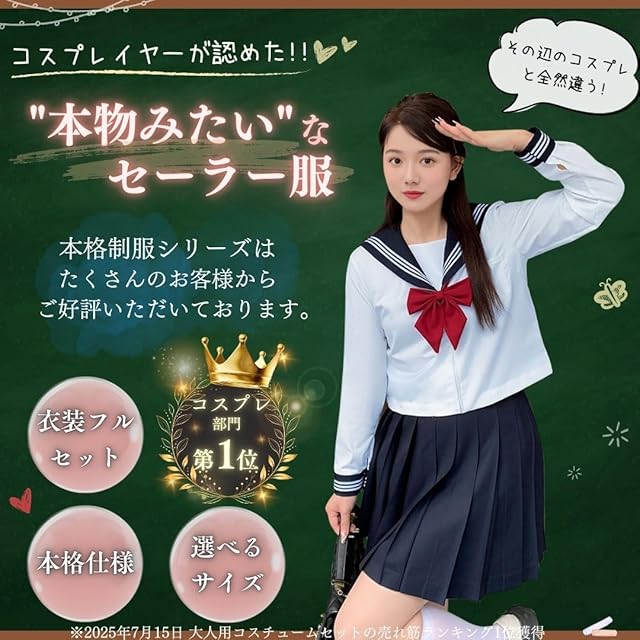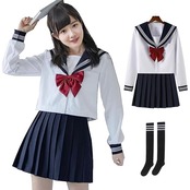【セーラ服フルセット】上着 / スカート / リボン / 3本線黒ソックス 【サイズ】S~2XL(サイズ詳細は商品画像にてご確認ください)