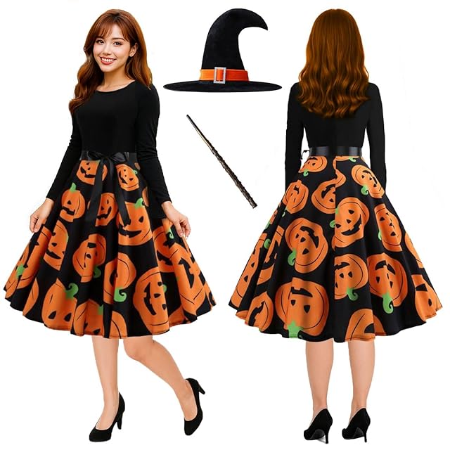 ⭐【 とってもオシャレ 】ハロウィンパーティーやイベントで大活躍!ジャック・オー・ランタンをモチーフにしたスタイリッシュなドレスワンピースです。