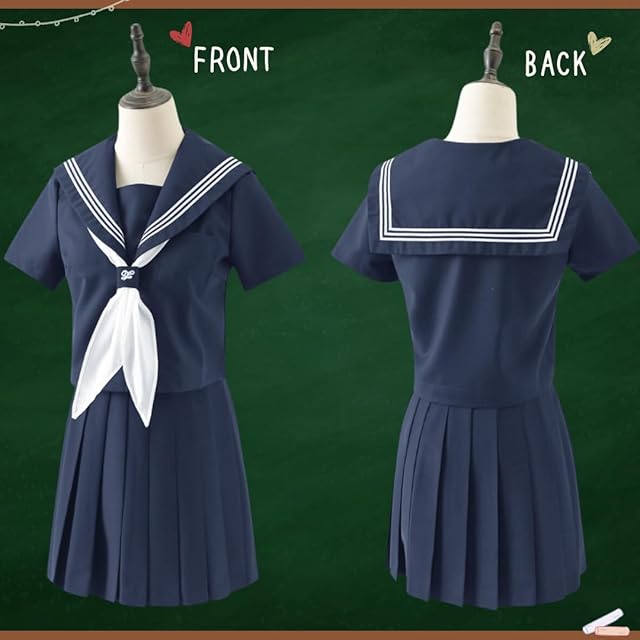 【セーラ服フルセット】上着 / スカート / リボン / 白ソックス 【カラー】紺色 【サイズ】S~2XL(サイズ詳細は商品画像にてご確認ください)