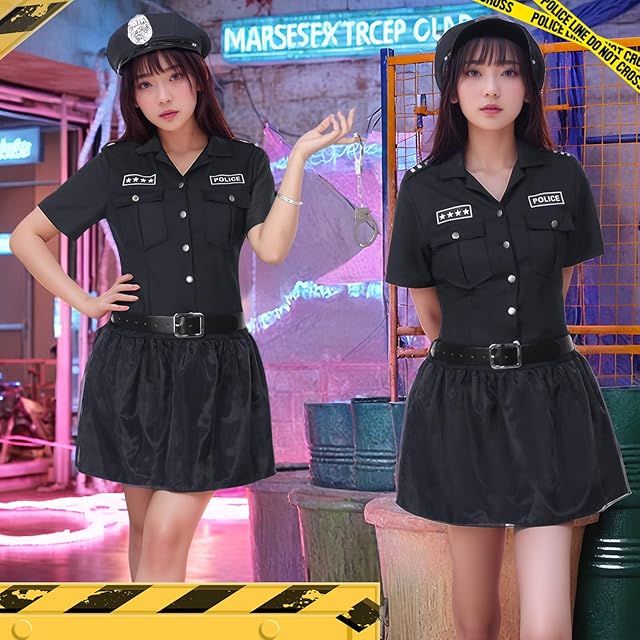 [Formemory] ポリス コスプレ 警察 ハロウィン コスプレ 制服 コスチューム 衣装 パーティー 仮装ミニスカポリス ハロウィン cosplay レディース婦警 ミニスカート 文化祭 (ブラック, XL)