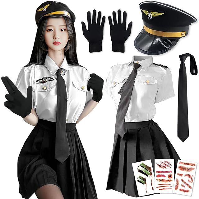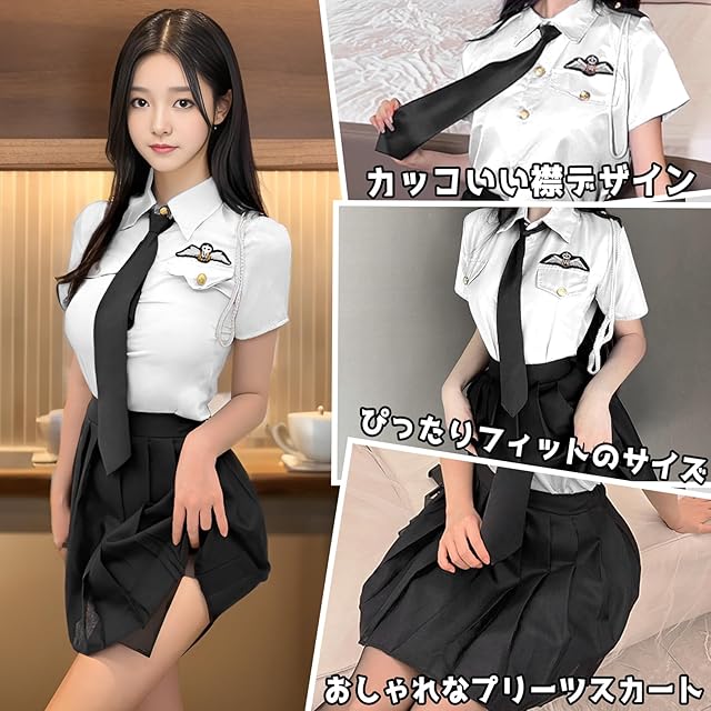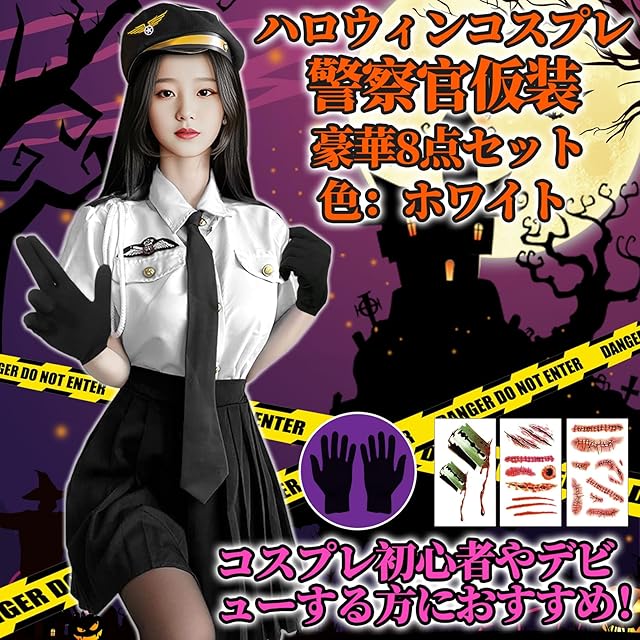 [COZENRE] ポリス コスプレ ハロウィン コスプレ 9点セット 仮装 警察 トップス、プリーツスカート、ネクタイ コスチューム 衣装 婦警 婦人警官 パーティー 仮装 cosplay ハロウィン レディース 色:ホワイト