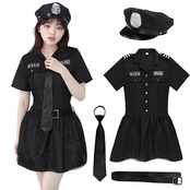 [Formemory] ポリス コスプレ 警察 ハロウィン コスプレ 制服 コスチューム 衣装 パーティー 仮装ミニスカポリス ハロウィン cosplay レディース婦警 ミニスカート 文化祭 (ブラック, S)