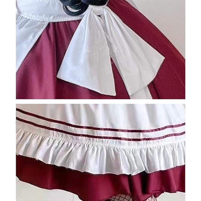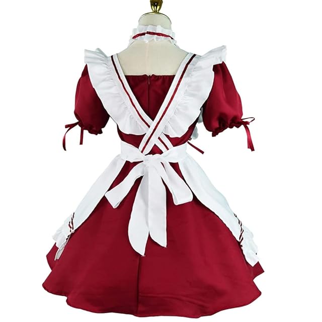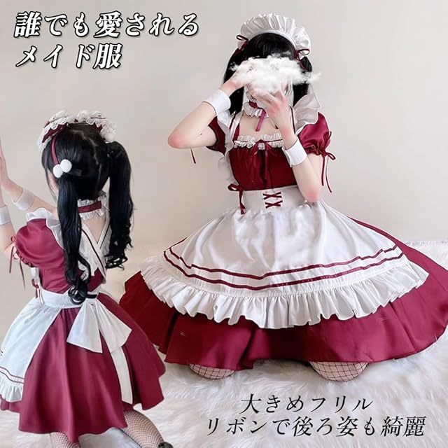[ANONIE] メイド服 コスプレ仮装 初心者 セット かわいい コスチューム ホワイト+ブラック 豪華セット (red, 4XL)