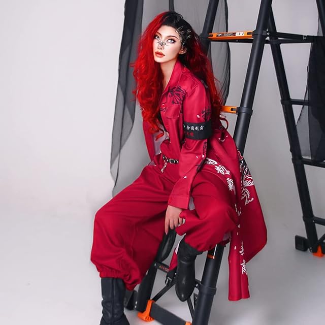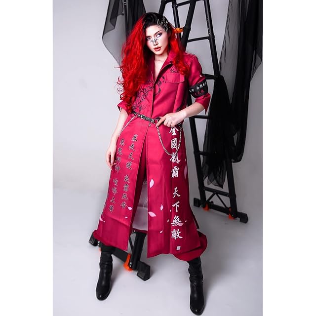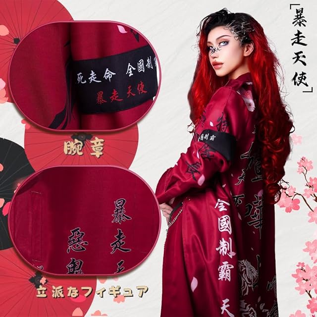 [Hotiego] ハロウィン 特攻服 コスプレ ヤンキー 赤 喧嘩上等 ツッパリ 不良 暴走族 暴走天使 聖夜制覇 走死走命 天上天下唯我独尊 愛羅武勇 コスチューム 男女兼用 舞台装 演出服 変装 仮装 イベント 忘年会 cosplay 撮影 祭り 龍虎 S