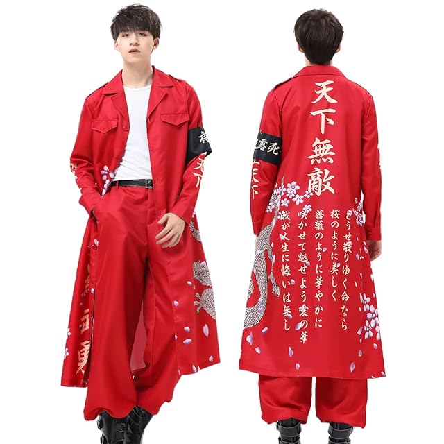 [HOLOUN] ハロウィン特攻服コスプレ衣装 印刷スタイル 暴走族 舞台装 演出服 文化祭 撮影 祭り Cosplayハロウィン仮装 アニメ祝日贈り物 (赤い S